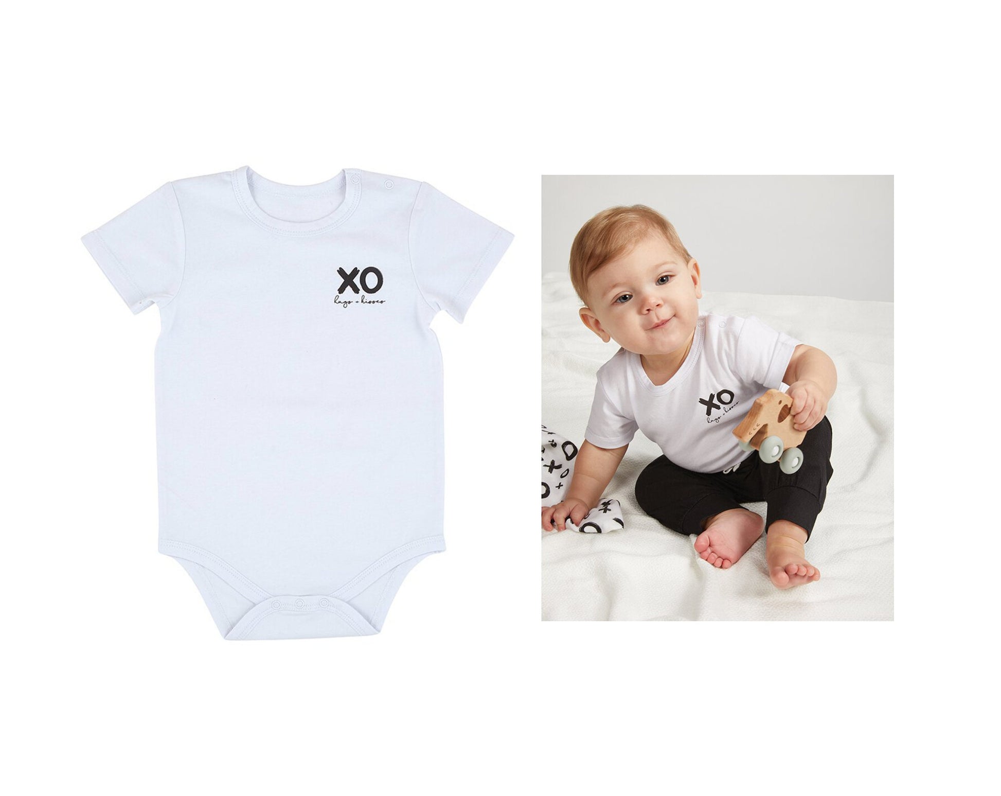 ♥ Snapshirt - XO hugs + kisses; This snapshirt includes snaps at Neck and Bottom for easy dressing. Size: 6-12 months; Material: 95% Cotton, 5% Spandex