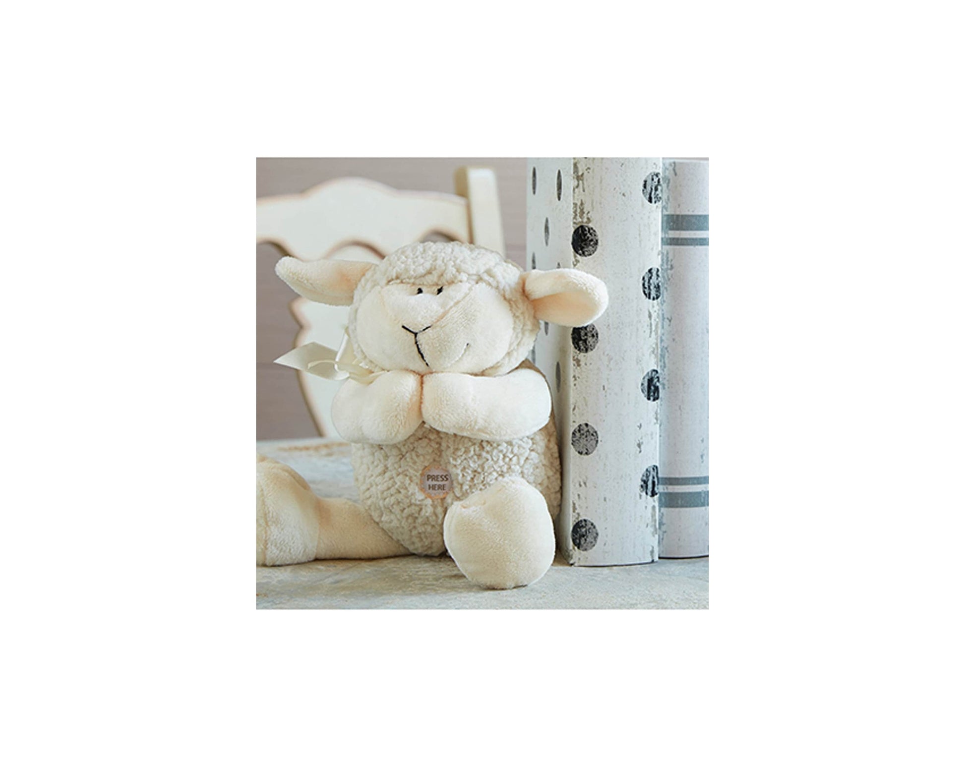 ♥ Plush Lamb; This adorable cream colored lamb has sweet praying hands. The lamb’s belly, when pressed, plays "Jesus Loves Me" to delight and inspire your little one. Material: Sherpa Polyester Plush; Size: 11" H; Damp Wipe Only. Dry Flat.