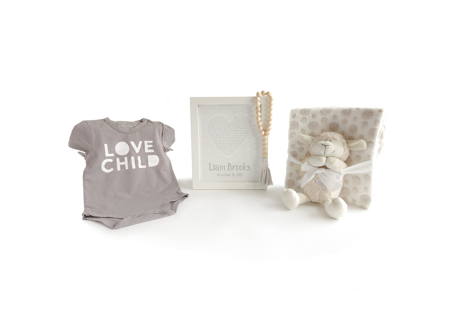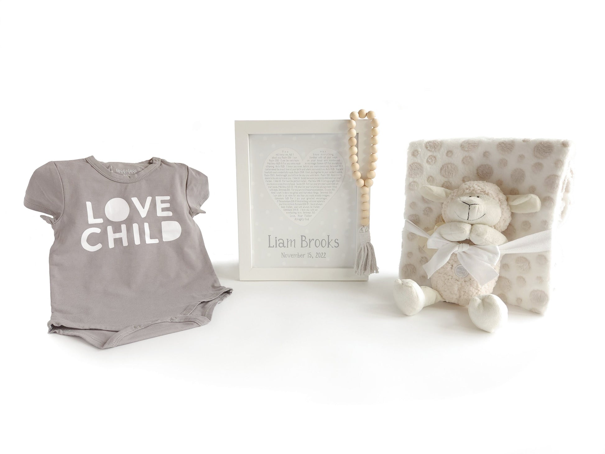 Our baby gift box is a beautiful and thoughtful way to welcome the new baby into the world and to celebrate the love and joy of parenthood. Featuring a curated selection of faith-based items, this care package is the perfect way to honor this precious moment and welcome the new baby. Our gift box is the perfect gift to welcome the new baby, baptism or christening.