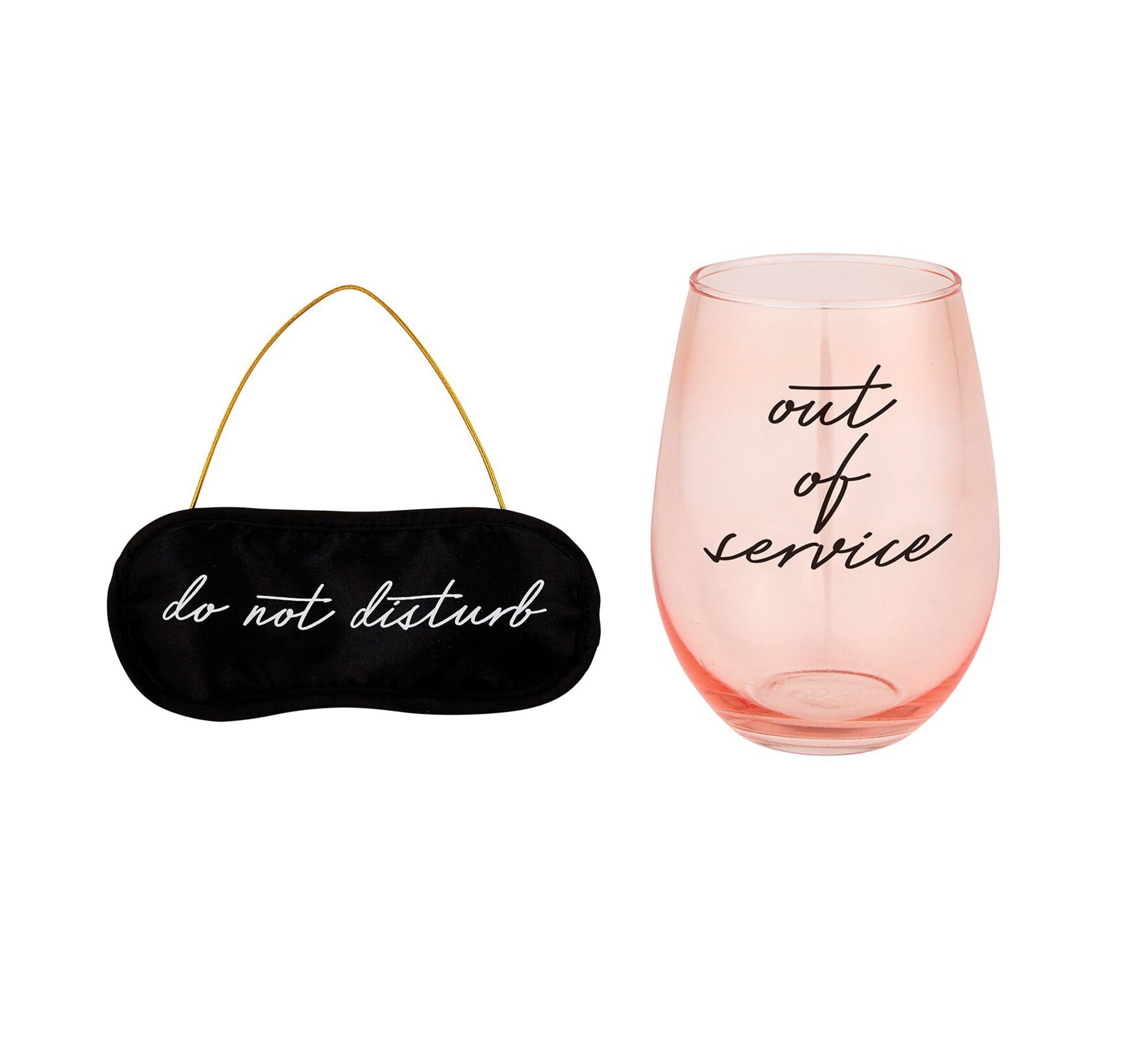 ♥ Wine Glass & Eye Mask "Out of Service" and "Do Not Disturb" Material: Glass; Size: 20 oz Mask: Traditional size.