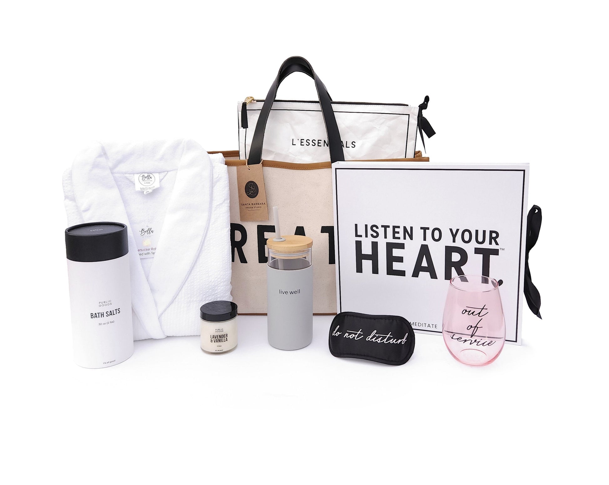 All items are packaged in the large canvas tote, making it the perfect spa getaway bag for your next girls' trip or weekend retreat.