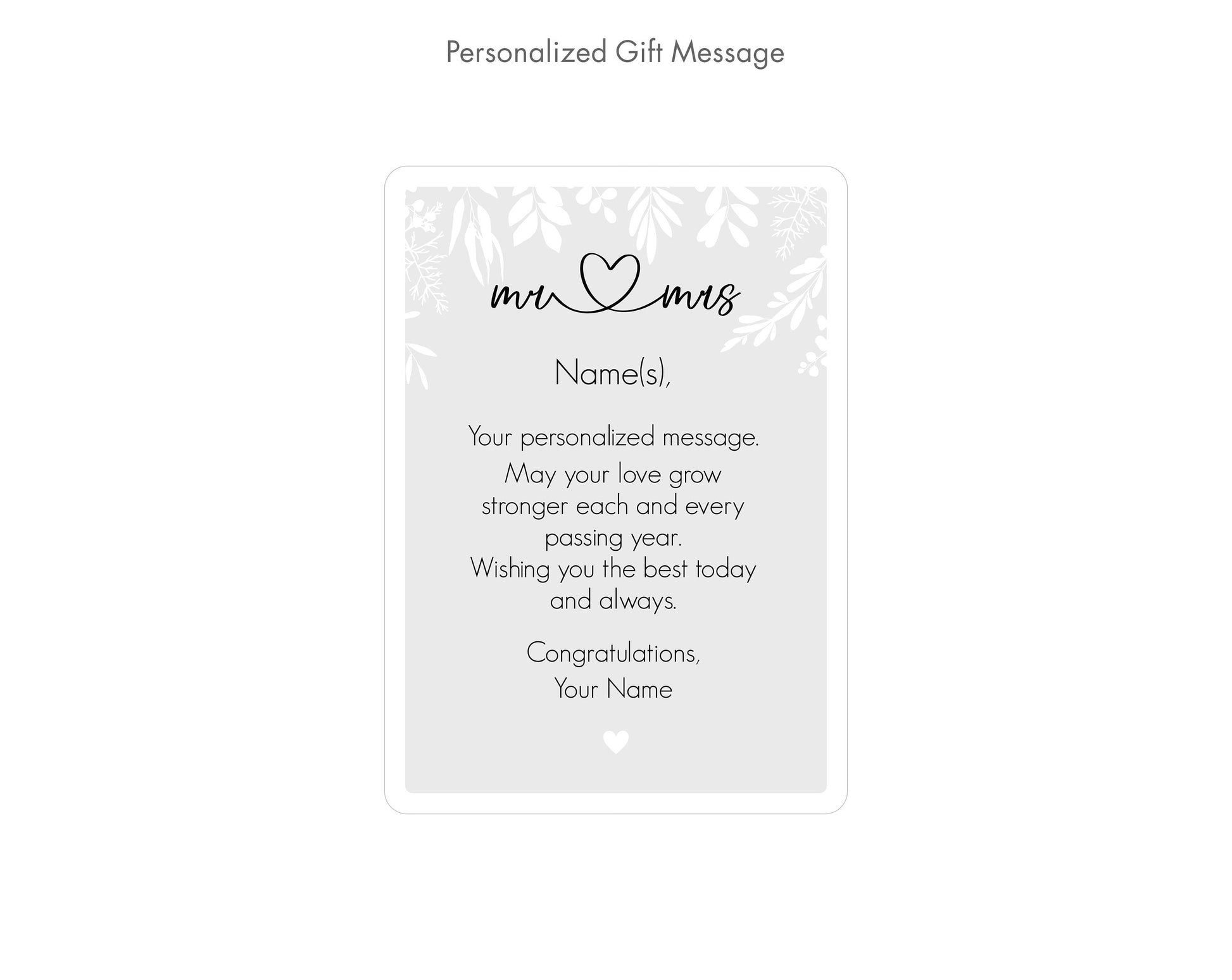 This personalized wedding care package is the perfect way to celebrate the joy and beauty of marriage and offer a heartfelt congratulations to the newlyweds. Perfect gift to honor the couple's special day and to support them as they embark on a lifetime of love and commitment.